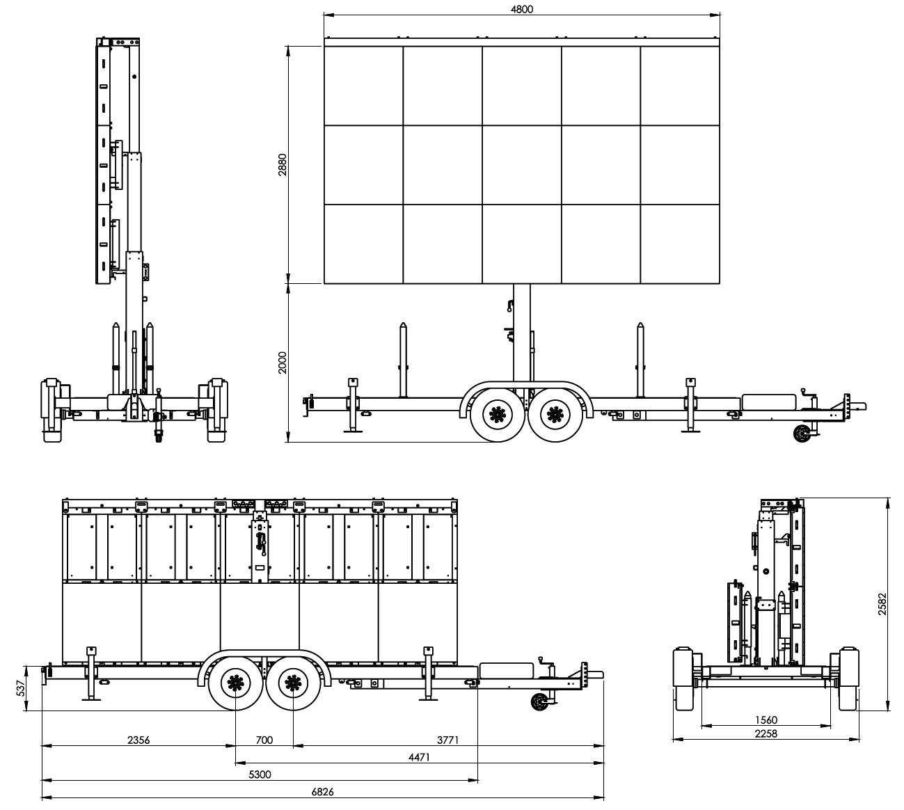 Mit 15 Quadratmeter Bildfläche und nur 2,70m Einfahrtshöhe kann dieser Trailer indoor und outdoor betrieben werden. Die Einsatzzwecke sind somit vielfältig: Von kleinen Präsentationen oder Public Viewings bis hin zu einem hochwertigen Bühnenhintergrund ist dieser Trailer völlig unkompliziert – mit oder ohne Ton – einsetzbar.